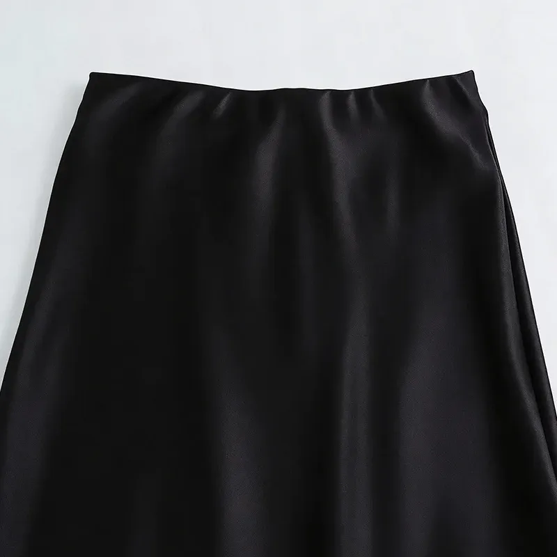 Step into timeless style with a skirt that offers both chic appeal and all-day comfort. The high-waisted design elongates the legs, providing a slimming effect. Crafted from satin, the skirt catches the light beautifully and creates a stunning flow as you move. Its midi length makes it the perfect companion for day-to-night transitions. Whether paired with a fitted top or a flowing blouse, this skirt effortlessly adapts to your personal style.