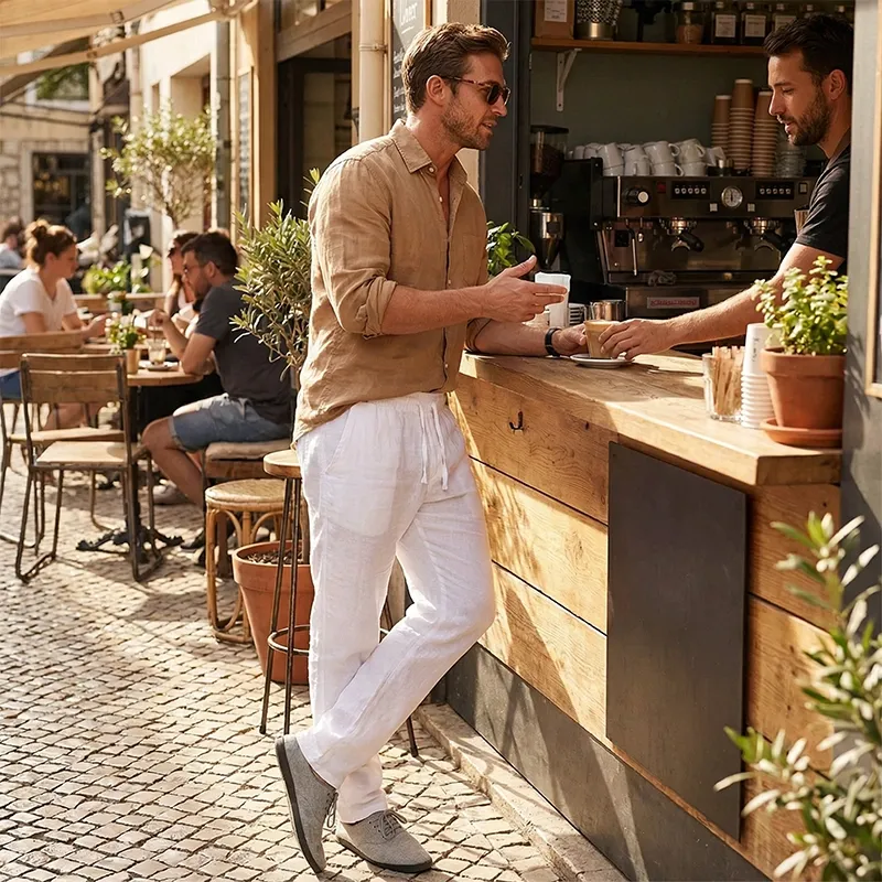 These pants are super light and comfy, I walked all day and didn’t even feel sweaty. Love how stylish they look with any tee.