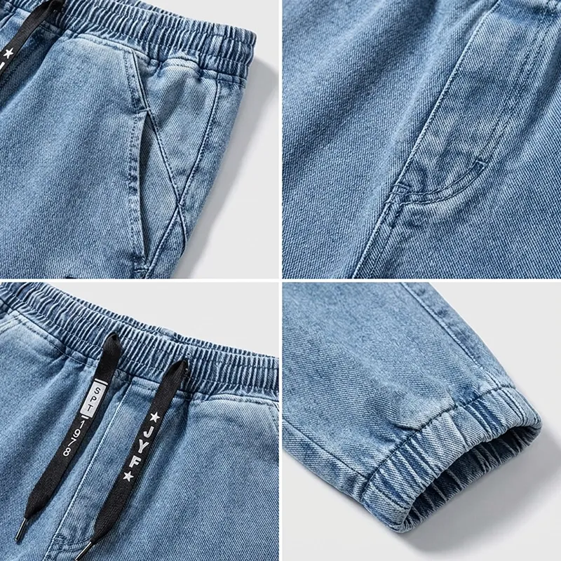 Seriously great denim joggers. I play with my kids and they still keep their shape. The soft material makes it even better for all-day wear.