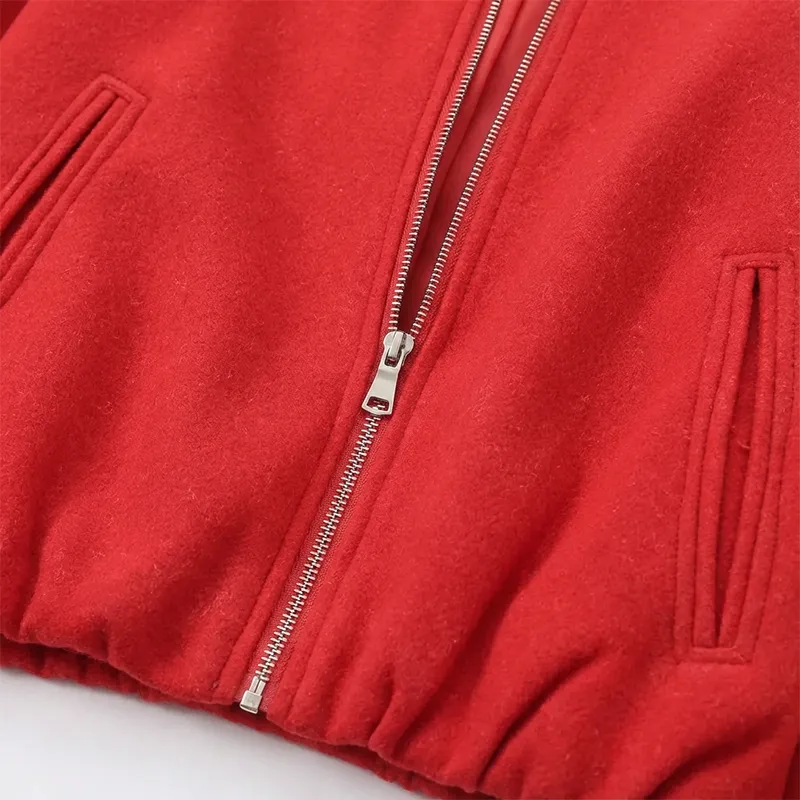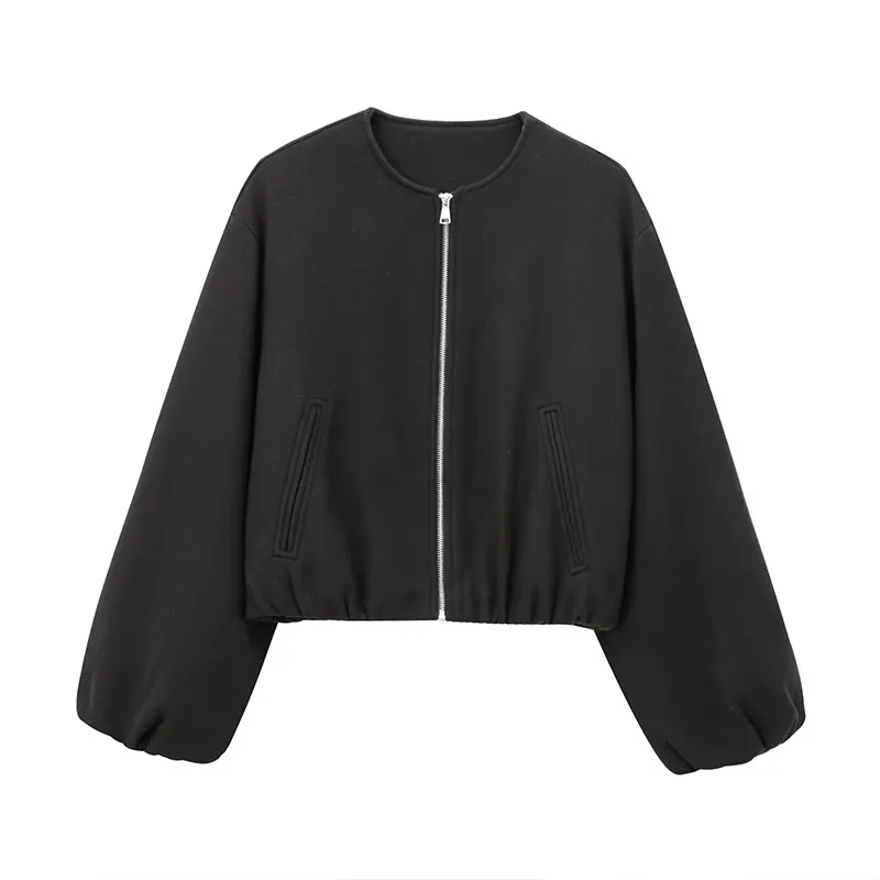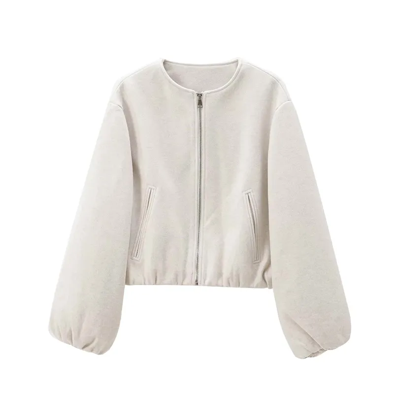 Designed to complement your look, this piece combines chic shape with functionality. The cropped cut enhances your silhouette and adds contemporary appeal. Durable stitching ensures long-lasting wear without compromising flexibility. Zipped pockets provide a safe place for your valuables and help keep your hands warm. Pair this jacket effortlessly with denim, skirts, or tailored trousers for instant style.