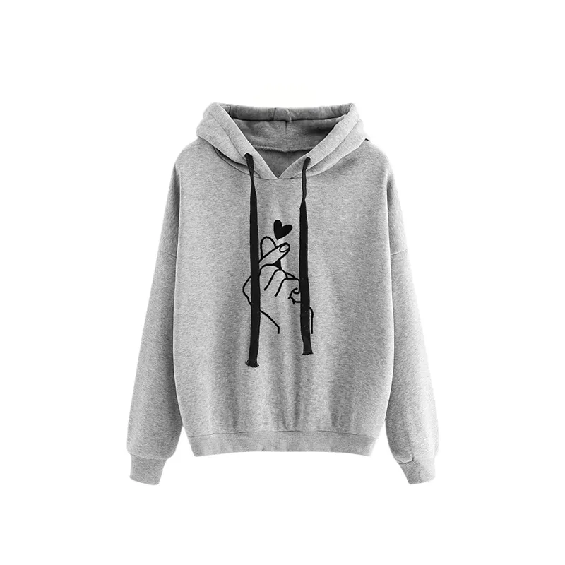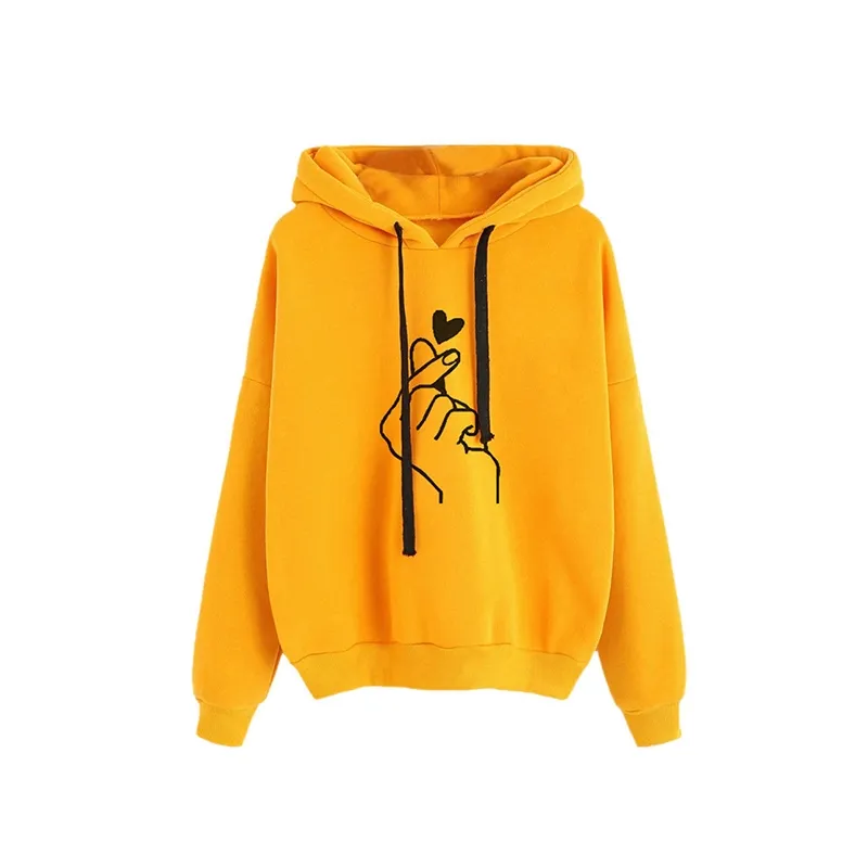 The hoodie is super cozy! I wear it on chilly morning walks and always stay warm. The finger heart design is really cute and makes me smile.