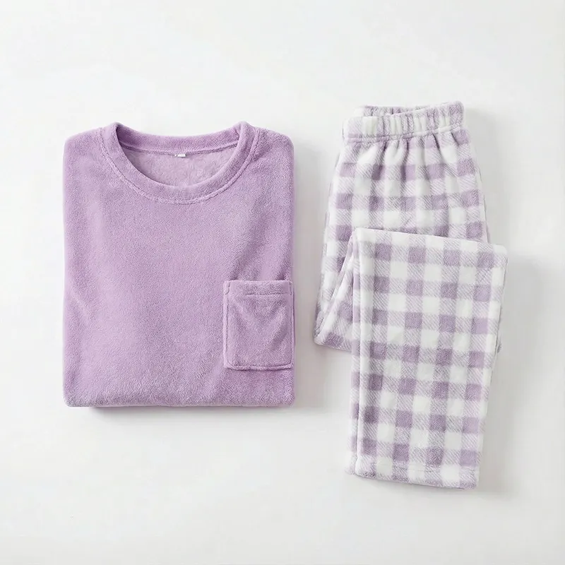Soft fleece provides cosy warmth during cool nights, enhancing your relaxation experience. The plaid trousers add a timeless flair, giving your attire a fashionable touch. Designed with a relaxed fit, the set allows effortless movement and lasting comfort. Gentle against the skin, the materials ensure soothing wear throughout quiet evenings. Combining elegance with practicality, this outfit transforms ordinary lounging into a stylish daily ritual.