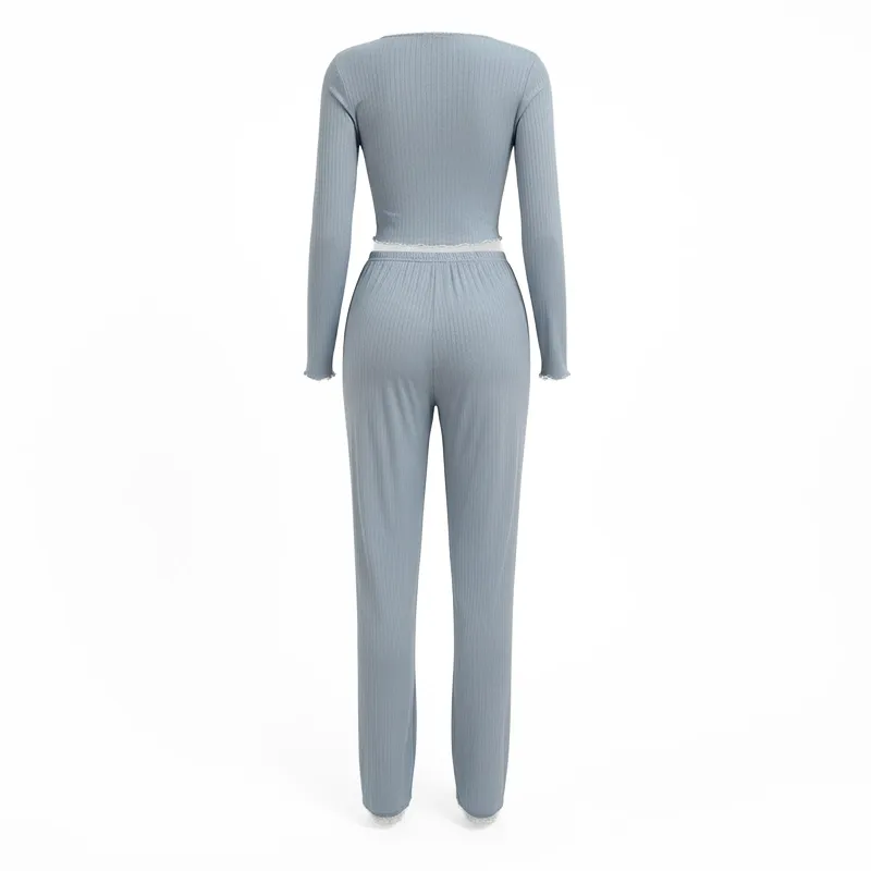 This loungewear set is designed to offer the perfect combination of comfort and fashion. The soft fabric ensures a relaxed fit and feels pleasant against the skin. You can enjoy unrestricted movement, whether you're relaxing or unwinding. The long sleeve design adds warmth for cooler evenings, making it perfect for year-round wear. This set is the ideal addition to your loungewear collection, delivering both style and practicality.