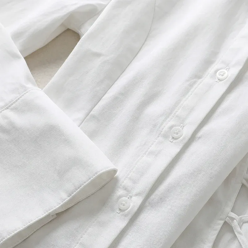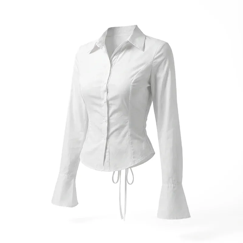 This shirt combines functionality with fashion, featuring a tie-back closure for a secure fit. The fabric drapes beautifully, offering a flattering look for all body types. It complements various outfits, making it easy to pair with jeans, skirts, or trousers. Ideal for both professional settings and casual outings, it transitions seamlessly between occasions. The blouse's design ensures comfort without compromising on style.